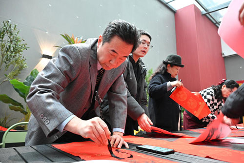 活動(dòng)當(dāng)天,鄭州市文聯(lián)的書(shū)法家們受邀來(lái)到現(xiàn)場(chǎng)。他們個(gè)個(gè)精神飽滿,手執(zhí)毛筆,在一張張紅紙上揮灑自如,書(shū)寫(xiě)著寓意深遠(yuǎn)的新年序言。這些序言既是對(duì)過(guò)去一年的總結(jié),也是對(duì)新年的美好期許。書(shū)法家們的精彩表演贏得了現(xiàn)場(chǎng)觀眾的連連稱贊,租戶們紛紛表示:“書(shū)法家們寫(xiě)的字真是太好了!‘福’字看著就喜慶,春聯(lián)的寓意也都非常美好。”