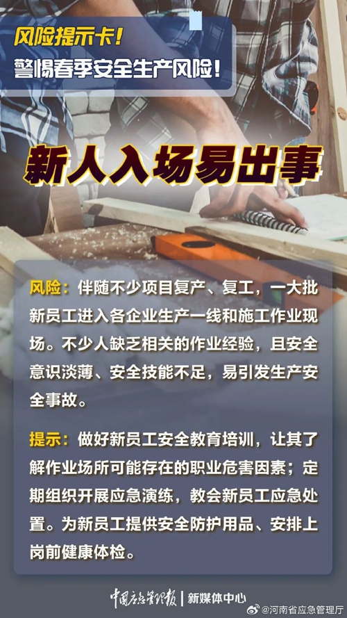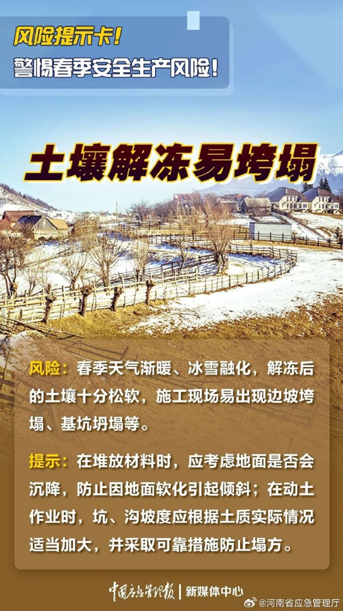 春季天氣多變,各行業(yè)復(fù)工復(fù)產(chǎn)步入正軌,生產(chǎn)節(jié)奏不斷加快的同時(shí),應(yīng)結(jié)合春季安全生產(chǎn)特點(diǎn)及時(shí)落實(shí)各項(xiàng)安全防范措施 ???。