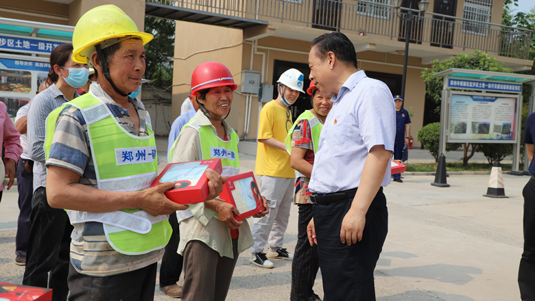 進(jìn)入夏季以來,持續(xù)出現(xiàn)的高溫天氣,給奮戰(zhàn)在建設(shè)一線的施工人員帶來嚴(yán)峻考驗(yàn),廣大職工不畏酷暑,堅(jiān)守崗位,辛勤付出。為做好廣大職工的防暑降溫工作,切實(shí)保護(hù)職工身體健康,6月11日,鄭州市總工會、鄭州市消防救援支隊(duì)到鄭州地產(chǎn)集團(tuán)西流湖公司中原新區(qū)土地一級開發(fā)項(xiàng)目指揮部開展主題為“送清涼、送安全、送健康、促和諧”的夏季送清涼活動。鄭州市一級巡視員、市總工會黨組書記、主席趙新中,市消防救援支隊(duì)副支隊(duì)長、滅火救援指揮部部長李隆,市總工會副主席宋少丹,鄭州地產(chǎn)集團(tuán)有限公司監(jiān)事會主席、工會主席李靜波及西流湖公司黨支部書記、董事長、總經(jīng)理吉獻(xiàn)亮等領(lǐng)導(dǎo)出席活動。活動由西流湖公司副總經(jīng)理昌磊主持。