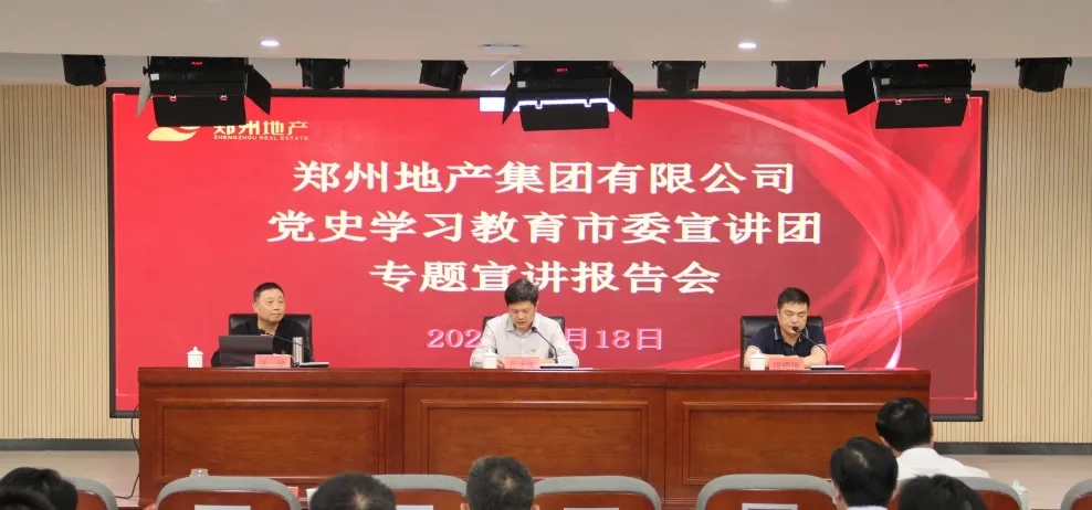 為持續(xù)推進(jìn)黨史學(xué)習(xí)教育走深走實(shí),5月18日上午,鄭州市委宣講團(tuán)走進(jìn)鄭州地產(chǎn)集團(tuán),在集團(tuán)301多功能廳開(kāi)展黨史學(xué)習(xí)教育專題宣講報(bào)告會(huì)。報(bào)告會(huì)由鄭州市委宣講團(tuán)成員、鄭州工程技術(shù)學(xué)院馬克思主義學(xué)院副教授張豪主講,市國(guó)資黨史學(xué)習(xí)教育第二巡回指導(dǎo)組組長(zhǎng)、四級(jí)調(diào)研員段德強(qiáng),指導(dǎo)組成員張?jiān)娪?、陳祥斐到?huì)巡聽(tīng)旁聽(tīng),地產(chǎn)集團(tuán)領(lǐng)導(dǎo)班子、總部全體員工,各子公司支部書(shū)記、黨建部門(mén)負(fù)責(zé)人等共計(jì)150余人參加現(xiàn)場(chǎng)報(bào)告會(huì),各子公司員工共計(jì)170余人通過(guò)線上直播進(jìn)行觀看,會(huì)議由地產(chǎn)集團(tuán)黨委書(shū)記、董事長(zhǎng)萬(wàn)永生主持。