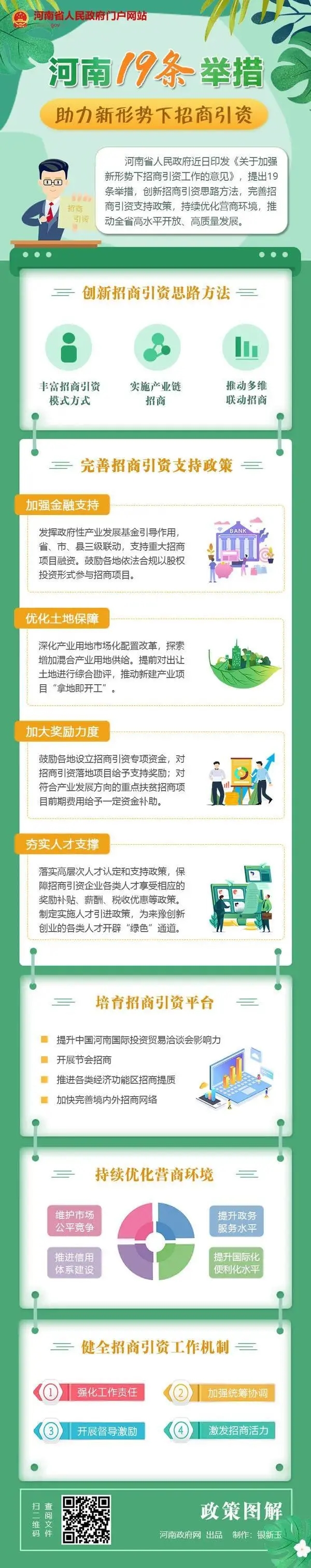 《意見》提出,加強金融支持,發(fā)揮政府性產(chǎn)業(yè)發(fā)展基金引導作用,省、市、縣三級聯(lián)動,支持重大招商項目融資。優(yōu)化土地保障,深化產(chǎn)業(yè)用地市場化配置改革,探索增加混合產(chǎn)業(yè)用地供給,推動新建產(chǎn)業(yè)項目“拿地即開工”。加大獎勵力度,鼓勵各地設(shè)立招商引資專項資金,對招商引資落地項目給予不同等次的支持獎勵;對符合產(chǎn)業(yè)發(fā)展方向的重點扶貧招商項目前期費用給予一定資金補助。夯實人才支撐,落實高層次人才認定和支持政策,保障招商引資企業(yè)各類人才享受相應(yīng)的獎勵補貼、薪酬、稅收優(yōu)惠等政策,制定實施人才引進政策,為來豫創(chuàng)新創(chuàng)業(yè)的各類人才開辟“綠色”通道。