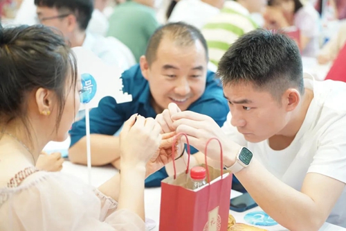 現(xiàn)場有數(shù)對(duì)單身男女在活動(dòng)中互加微信,他們通過這個(gè)平臺(tái)深入了解彼此,逐漸建立起深厚的感情。