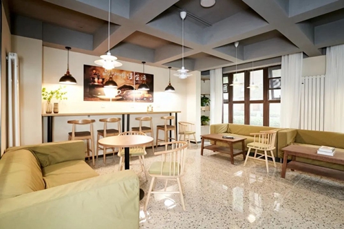 臺(tái)球廳設(shè)備專業(yè)、酷感十足;能容納200多人的共享空間,在這里可以上自習(xí)室還能看電影……一到周末,位于城南的鼎盛美寓共享中心總是十分熱鬧,不少年輕人來(lái)這里聚會(huì)休閑。