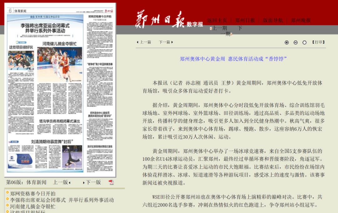 雙節(jié)黃金周期間,為豐富廣大市民假期出游選擇,鄭州奧體中心根據(jù)群眾喜聞樂見的休閑娛樂活動(dòng),充分發(fā)揮場館優(yōu)勢,開展場館低免開放、國際車展、運(yùn)動(dòng)賽事等一系列豐富多彩的惠民文體活動(dòng),在小長假期間,累計(jì)吸引近30萬人次來到鄭州奧體中心打卡精彩活動(dòng),受到央視新聞?lì)l道、河南廣播電視臺、鄭州廣播電視臺、鄭州日報(bào)等官方媒體爭相報(bào)道。
