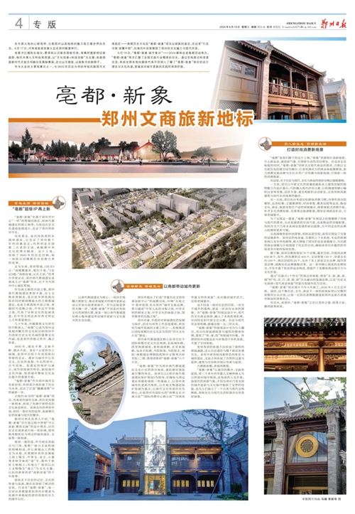 6月18日,“亳都·新象 城市復(fù)興”——2024媒體走進(jìn)亳都活動舉辦,傳承鄭州城市文脈,和歷史風(fēng)貌一脈相承,形成了充滿中原特色的文化商業(yè)街區(qū)?,F(xiàn)代的文化商業(yè)場景,融入了本地街巷肌理、空間特色和中原文化元素。歷史與現(xiàn)代在這里相遇,碰撞出獨一無二的火花。
