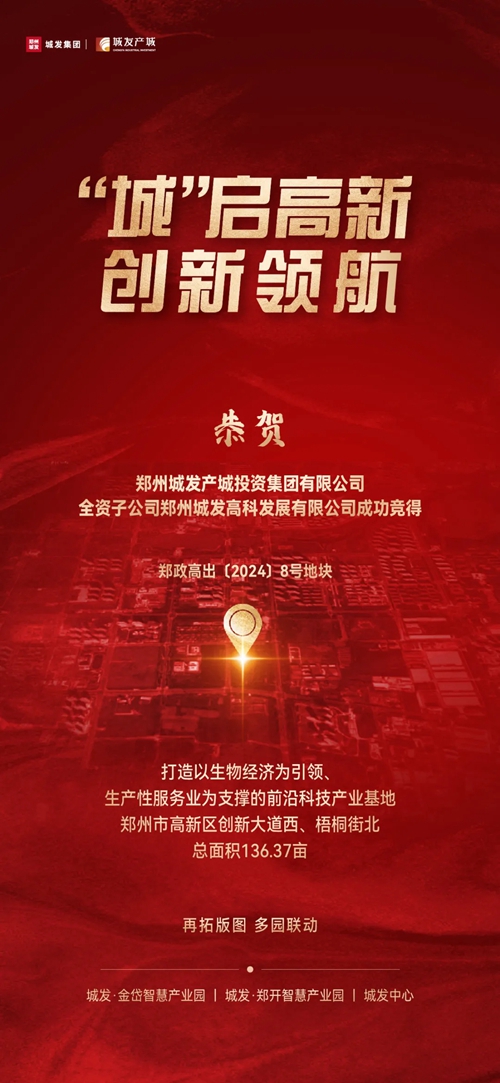 9月29日,鄭州城發(fā)產(chǎn)城投資集團(tuán)有限公司全資子公司鄭州城發(fā)高科發(fā)展有限公司成功競得鄭政高出〔2024〕8號地塊,該地塊位于鄭州市高新區(qū)創(chuàng)新大道西側(cè)、梧桐街北側(cè),為一類工業(yè)用地(小微企業(yè)園用地),總面積136.37畝。