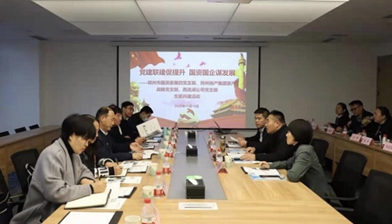為深入學(xué)習(xí)貫徹黨的十九屆五中全會精神,進(jìn)一步促進(jìn)國資國企改革發(fā)展,不斷探索黨建與企業(yè)科學(xué)發(fā)展的有機(jī)融合,11月19日下午,鄭州市國資委第四黨支部與鄭州地產(chǎn)集團(tuán)資產(chǎn)戰(zhàn)略黨支部、西流湖公司黨支部聯(lián)合開展支部共建活動。鄭州市國資委黨委委員、副主任劉學(xué)銀,副調(diào)研員范桂田,第四黨支部書記、財務(wù)監(jiān)管處處長范競,產(chǎn)權(quán)管理處處長常艷麗,鄭州地產(chǎn)集團(tuán)資產(chǎn)戰(zhàn)略黨支部書記、資產(chǎn)運(yùn)營部部長王樂琪,西流湖公司黨支部書記、董事長、總經(jīng)理吉獻(xiàn)亮,副總經(jīng)理李金光參加活動。