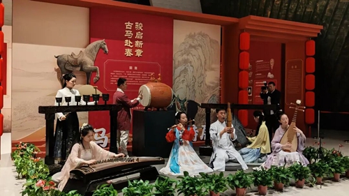 隨后,《古馬赴春 駿啟新章》的古樂表演悠揚(yáng)回蕩,身著商都元素華服的模特款款而行,演繹著古老文明的時(shí)尚新生。嘉賓們?cè)诖私獯a中國早期文明的根脈,感受歷史可觸、可品、可共鳴的鮮活氣息。