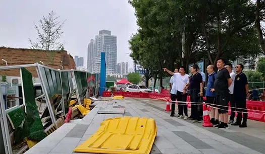 汛情緊急,快速應(yīng)對(duì)力保平安。公司黨支部書(shū)記、執(zhí)行董事、總經(jīng)理趙佳佳對(duì)于防汛工作作出工作部署,工程管理部即時(shí)啟動(dòng)24小時(shí)項(xiàng)目值守,扎實(shí)做好暴雨防御、隱患排查、雨水倒灌、排水等各項(xiàng)工作,全力保障工程安全。7月22日,公司總經(jīng)理趙佳佳、副總經(jīng)理郭燦帶隊(duì)在健康城項(xiàng)目所有標(biāo)段進(jìn)行災(zāi)后安全隱患巡查。