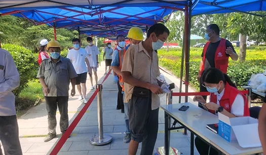 由于龍湖社區(qū)內(nèi)工地?cái)?shù)量多,人員流動(dòng)性大,檢測(cè)人群普遍年齡偏大,給檢測(cè)工作著實(shí)帶來(lái)一定難度。尤其是有一位工友,左腿受傷骨折,打著石膏拄著拐杖來(lái)做檢測(cè),他沒(méi)有拿身份證且隨行人員都不會(huì)熟練操作手機(jī)掃碼,但在志愿者的引導(dǎo)下,從帶領(lǐng)他走愛(ài)心通道、到協(xié)助錄入信息、幫助他們?nèi)私仄亮舸嬉约白罱K完成檢測(cè),志愿者認(rèn)真的工作態(tài)度得到了工友和社區(qū)工作者的高度贊揚(yáng)。檢測(cè)期間,志愿小隊(duì)統(tǒng)一按照社區(qū)的調(diào)度安排,各司其職,專(zhuān)人專(zhuān)崗,一切行動(dòng)聽(tīng)指揮,做到了各環(huán)節(jié)專(zhuān)人負(fù)責(zé)和快速反饋,整體檢測(cè)工作快速有序的進(jìn)行,僅在15日一天,社區(qū)就完成了4000余人次的檢測(cè)。來(lái)自龍湖社區(qū)的居民表示,第四次核酸檢測(cè)相較于前幾次效率明顯提高且秩序良好,從最初的半個(gè)小時(shí)以上到現(xiàn)在的幾分鐘,這不僅是效率質(zhì)變,更是廣大一線(xiàn)工作人員的付出心血,大家都非常感謝他們。