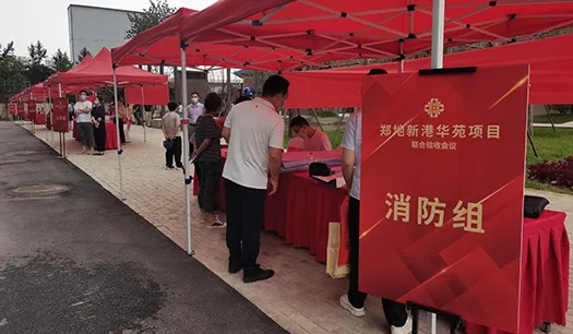 鄭地新港華苑項(xiàng)目于2021年8月26日下午,順利完成由鄭州市城建局牽頭組織,人防、消防、質(zhì)監(jiān)、規(guī)劃等部門共同參與的聯(lián)合驗(yàn)收,是疫情期間第一個(gè)通過(guò)聯(lián)合驗(yàn)收的建設(shè)項(xiàng)目。為嚴(yán)格落實(shí)鄭州市新冠肺炎疫情的防控要求,新港華苑項(xiàng)目部提前制定了周密的疫情防控方案,采取了妥善的疫情防控措施,有序組織進(jìn)入院區(qū)人員掃健康碼、檢查48小時(shí)核酸檢測(cè)結(jié)果、測(cè)量體溫、酒精消殺、分發(fā)防疫包等。經(jīng)過(guò)啟動(dòng)儀式、書面匯報(bào)、現(xiàn)場(chǎng)巡查、聯(lián)動(dòng)測(cè)試等環(huán)節(jié),鄭地新港華苑項(xiàng)目順利完成聯(lián)合驗(yàn)收工作。